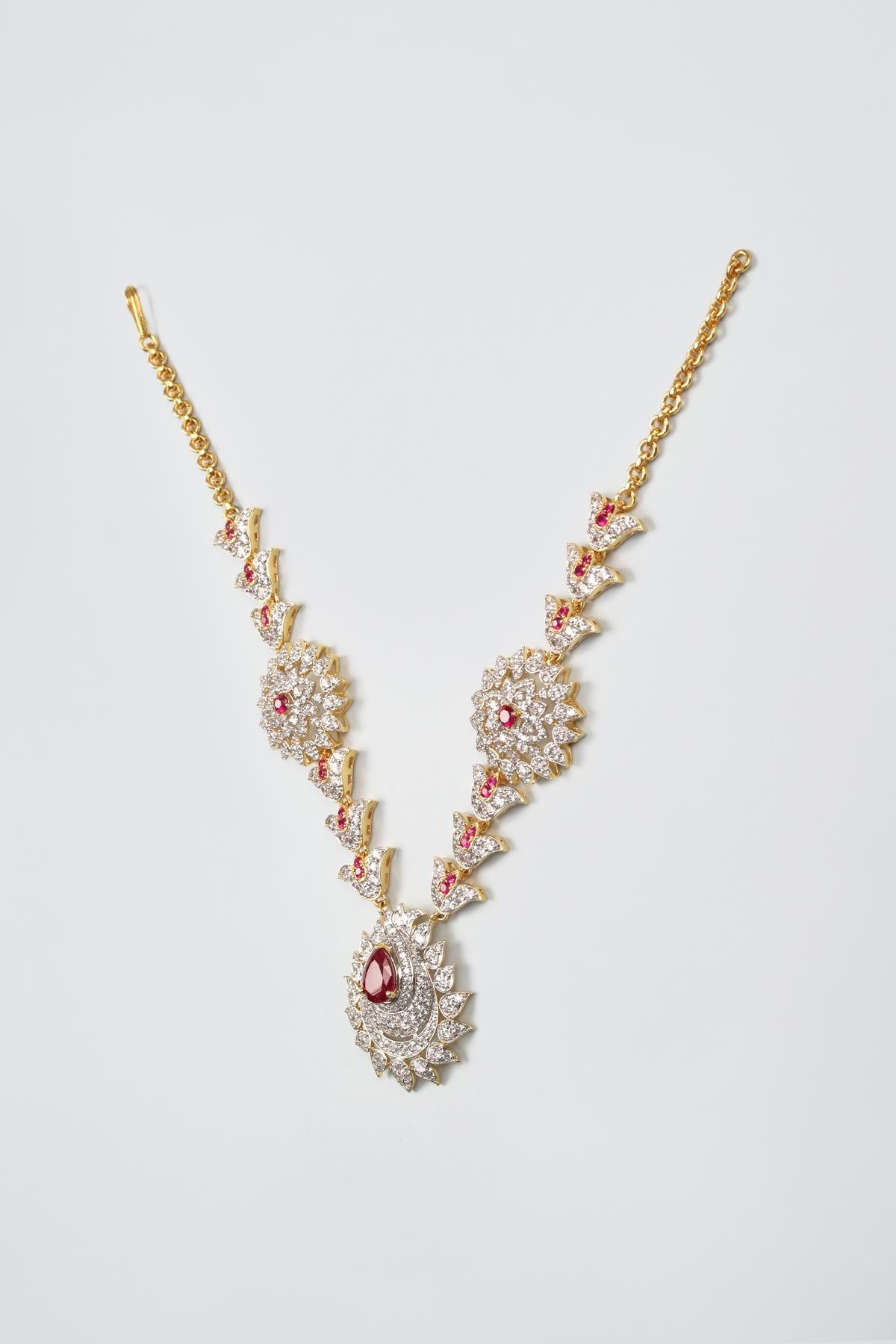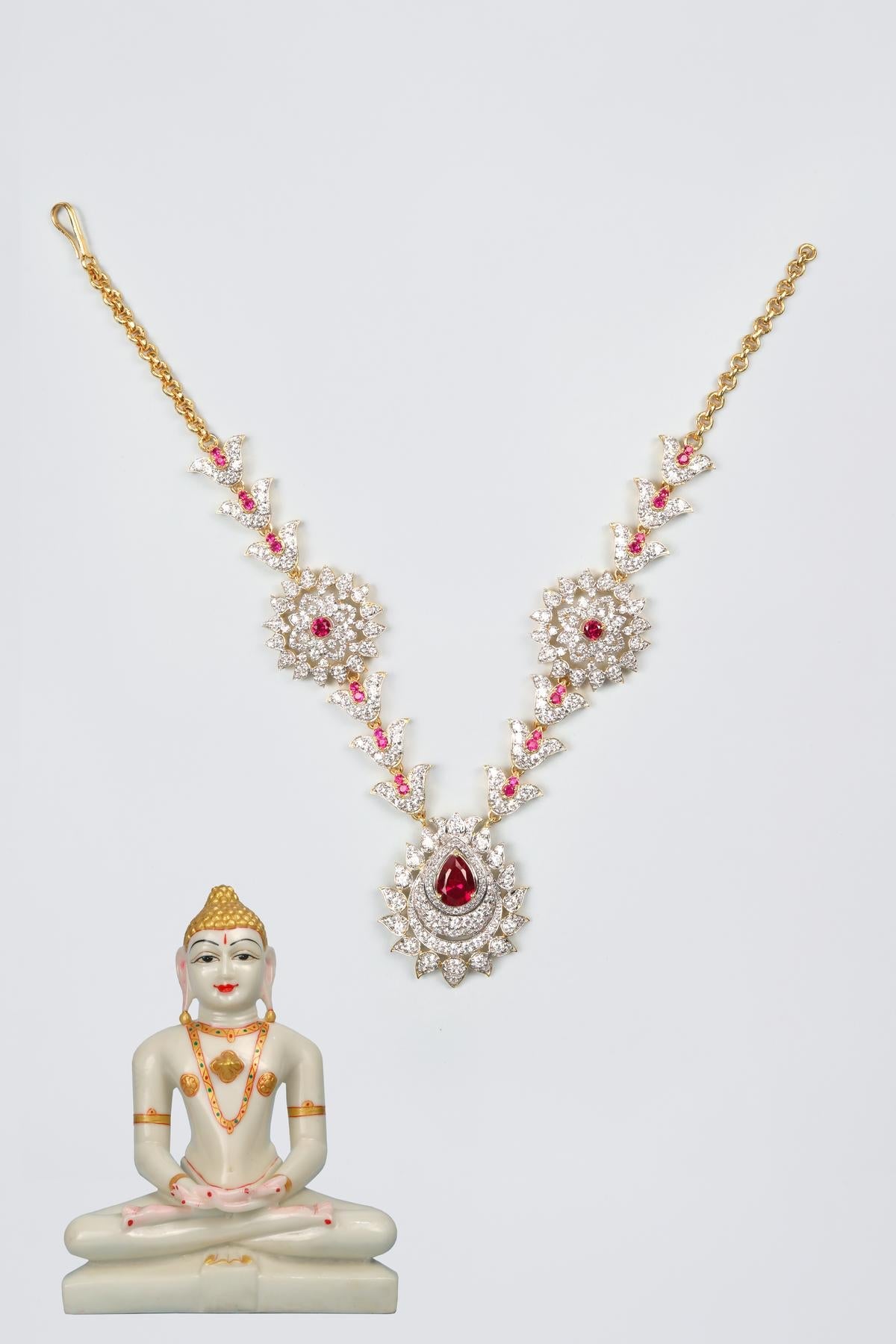 Radiate regal charm with this haar featuring a teardrop pendant accented by shimmering stones, perfect for enhancing your spiritual elegance at worship space