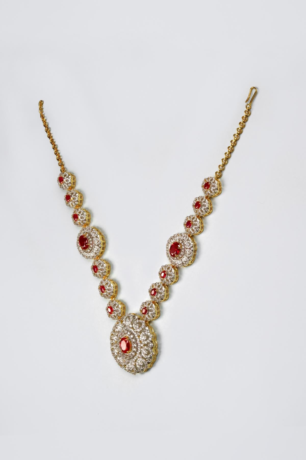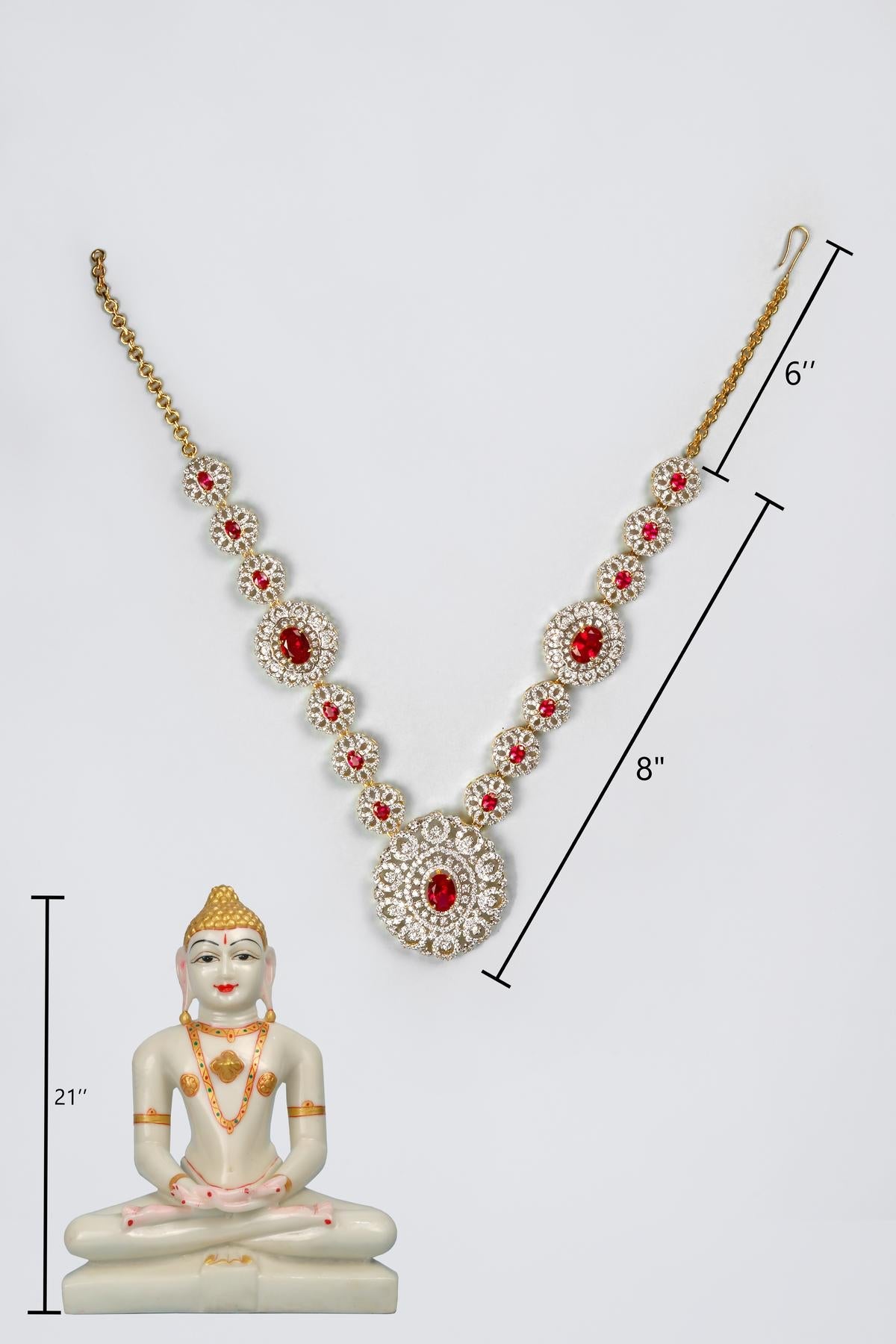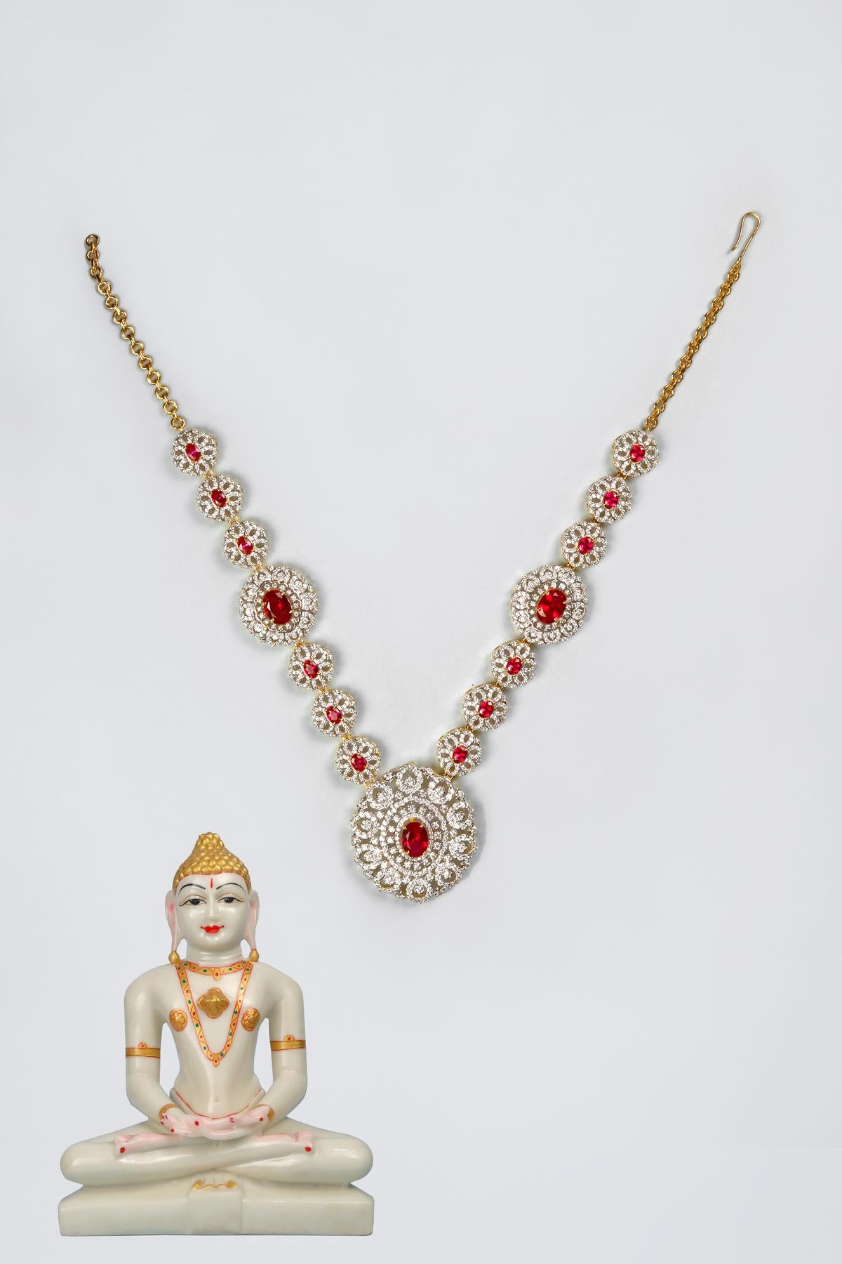Immerse your deity in celestial splendor with this divine necklace, bedecked with CZ stones and meticulously adorned with Italian rhodium for an ethereal touch