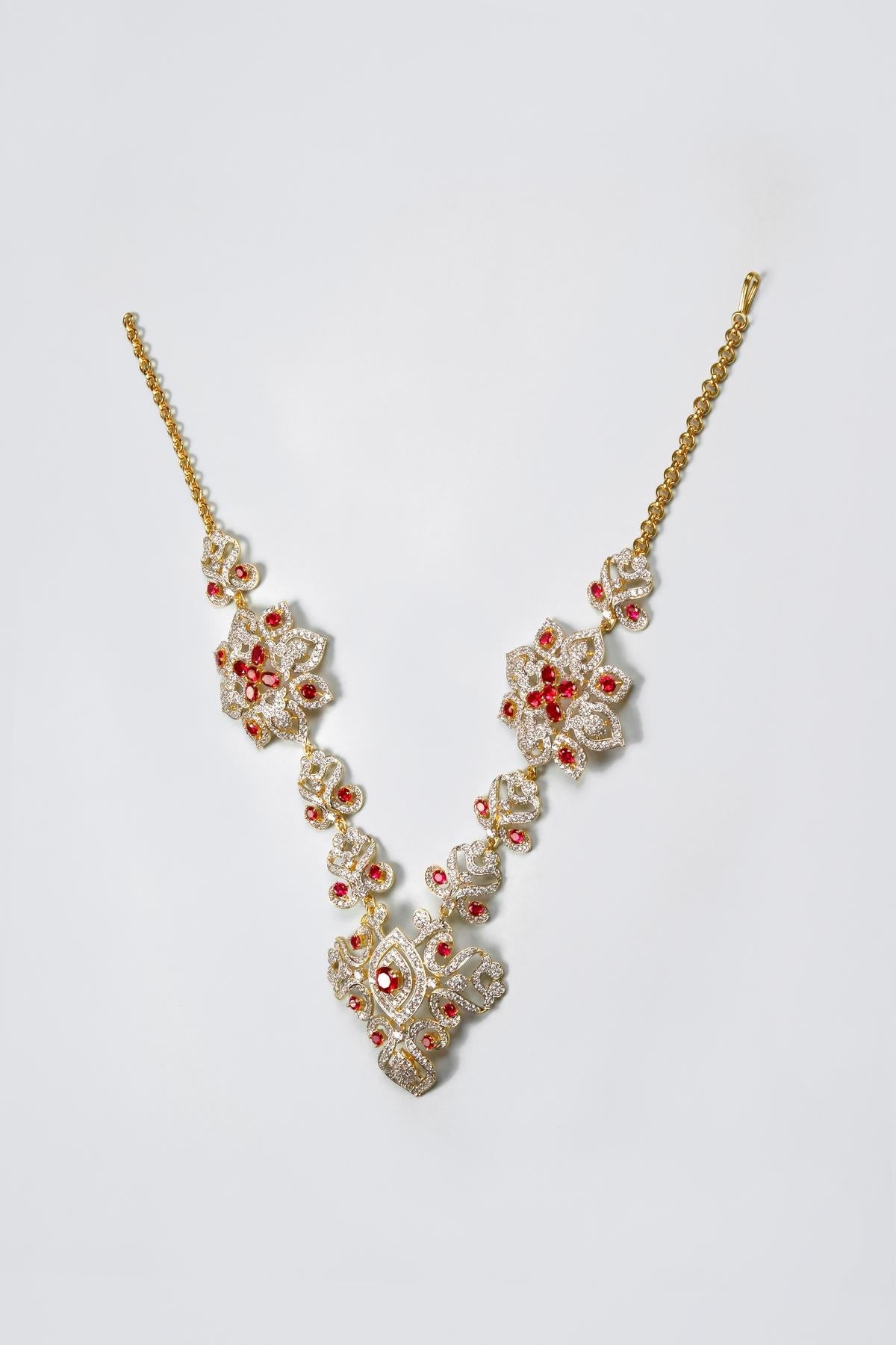 Enhance the sanctity of your deity's adornment with this sacred antique haar, featuring intricate stone embellishments that evoke reverence